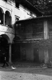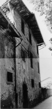 La facciata ad archi è di tipica impostazione bergamasca di allora e secondo quanto mi segnalò nel 1981 l’architetto Angelo Napo Arrigoni di Crema la tipologia richiama nel loggiato del 2° piano sottotetto quella Vertovese del follo .