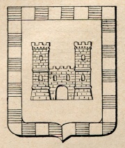 (alias): D’azzurro al castello d’argento, colla bordura composta del secondo e del primo. (D. M. di Ricon. 20 marzo 1899).
