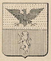 ARMA: Troncato di oro e di rosso: il 1° all’aquila di nero; il 2° al leone d’oro (Ric. 1879).