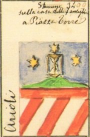 Sull’edificio c’è anche lo stemma del casato e un motto latino: “Non manet aeternum dominus sine semine vivens ipsius at longum stemmate nome habete”. Tradotto significa che anche i padroni hanno vita breve, e se non vi sono eredi rimarrà almeno lo stemma a testimoniare la grandezza della famiglia. Lo stemma e il motto, peraltro, sono riprodotti su un antico palazzo in piazza Mercato del fieno, in Città Alta a Bergamo. Degli Arioli si hanno notizie fin dal XIV secolo: in particolare vengono citati, insieme ad altre quarantuno famiglie, in un documento del 1338 riguardante le provvigioni sul Dazio dell’acqua del naviglio di Cremona. Il casato si diffuse nel corso dei secoli in diverse città della Lombardia, nel Veneto e in Toscana.