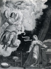 Pietro Baschenis. Affresco della Annunciazione. Sombreno, Santuario