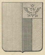 ARMA: Partito: al 1° di rosso, al 2° partito, di nero e di porpora col capo di porpora all’aquila d’oro coronata dello stesso.