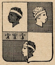 ARMA: Inquartato di argento e di nero: il 1° e 2° alla testa di moro, dell’uno nell’altro, le teste addossate: in una terza testa attraversante nella partizione fra il 3° e il 4° punto dell’uno all’altro; il 3° al capo di rosso, cucito, carico di tre gigli d’oro ordinati in fascia.