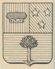 ARMA: (Napoleonica): Semipartito troncato: nel 1° di rosso ad un berretto di velluto nero con risvolti d’ermellino (segno d’origine dei Procuratori Generali presso le Corti d’Appello); nel 2° di verde a tre stelle d’argento bene ordinate; nel 3° d’azzurro ad una pianta d’alloro di verde, cucita, sradicata (allusivo alla laurea dei Giureconsulti).