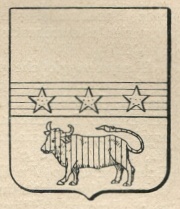 Alias: D’argento alla fascia d’azzurro carica di tre stelle d’oro, accompagnata in punta da un bue di rosso.