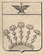 ARMA: D’argento, a cinque alberi di verde posti in ventaglio moventi da un fuoco di rosso sopra una terrazza del secondo; col capo d’oro all’aquila di nero, coronata del campo.