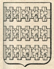 ARMA: D’argento a tre fascie di rosso, doppio-merlate, ciascuna carica di cinque trifogli d’oro.