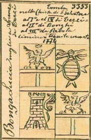 Stemma di Lucia Bonga (tomba nella chiesa di S. Salvatore a Bergamo, 1774, Stemmario Camozzi n. 3353