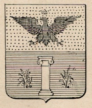 ARMA: Troncato: di sopra, d’oro all’aquila di nero, coronata del campo: di sotto d’azzurro alla colonna di argento, accostata da due cespugli di brugo (erica al naturale).
