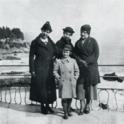 Nervi (Ge). Da sin.: Rina Perego Gioncada, Maria Perego Scotti, Teresa Bottaini Suardo e, al centro, Ninì Scotti (1936)