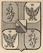 ARMA: Inquartato, colla croce di rosso, patente, sulla inquartatura: al 1° e 4° di azzurro al leone coronato di oro, al 2° e 3° di argento, all’aquila di rosso, coronata di oro e, sul tutto, troncato di argento e di nero, alla banda di rosso.