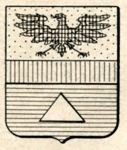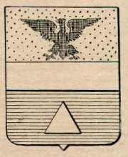 ARMA: Troncato: nel 1° d’oro all’aquila di nero; nel 2° d’azzurro ad un triangolo d’argento; con la fascia d’argento attraversante sulla troncatura.