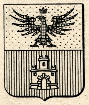 ARMA: Troncato: nel 1° d’oro all’aquila di nero, coronata del campo; nel 2° di rosso al castello d’argento rotondo, torricellato di due pezzi e merlato alla ghibellina.
