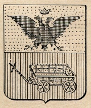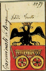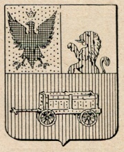 ARMA: Semipartito e troncato: nel 1° d’oro all’aquila di nero coronata dal campo; nel 2° d’argento al leone di rosso uscente dalla troncatura; nel 3° di rosso al carretto d’oro.