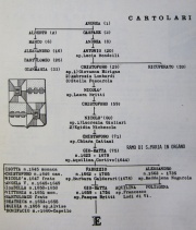 ARMA: inquartato: nel primo e quarto grembiato di otto pezzi di rosso e d’argento, con lo scudetto in cuore di azzurro caricato di una torre d’argento aperta, finestrata e murata di nero (Aliprandi); nel secondo e terzo troncato d’oro e d’argento alla fascia contro doppio merlata di tre pezzi d’azzurro sulla partizione (Cartolari)