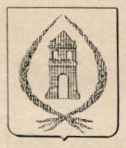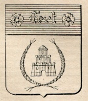 ARMA: D’argento al mastio rosso aperto nel campo, merlato di 5 pezzi alla guelfa e torricellato d’un pezzo con tre merli simili e coperto: il tutto racchiuso tra due treccie di capelli di rosso, ciascuna di tre manipoli, combaciantisi in alto e decussati nella punta dello scudo.