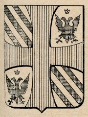 ARMA: Inquartato: nel 1° e 4° d’argento a tre bande di nero; nel 2° e 3° d’argento all’aquila bicipite di nero, coronata di oro, alla croce patente di rosso, attraversante sull’inquartato.