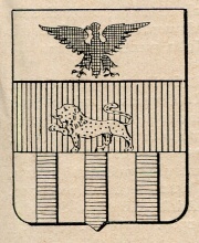 ARMA: Interzato in fascia: al 1° d’argento all’aquila di nero, linguata di rosso; al 2° di rosso, al leone illeopardito d’oro; al 3° d’argento a tre pali di azzurro.
