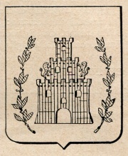 ARMA: D’argento, al castello cimato da una torre di due piani, di rosso, aperta e finestrata del campo; la torre accostata da due leoni d’oro affrontati; il detto castello abbracciato da due rami di lauro di verde.