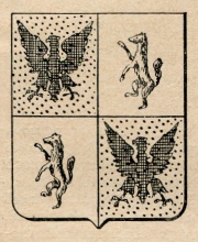 ARMA: Inquartato: nel 1° e 4° d’oro all’aquila di nero; nel 2° e 3° d’argento alla volpe al naturale, rampante.