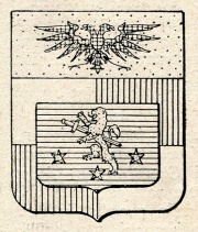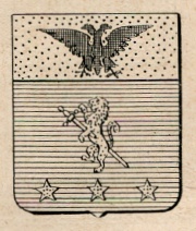 ARMA: D’azzurro al leone d’oro trafitto in banda da una spada al naturale; accompagnata in punta da tre stelle d’oro; col capo d’oro carico di un’aquila bicipite di nero.