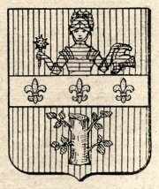 ARMA: Di rosso, alla fascia d’argento caricata di tre gigli d’oro, accompagnata in capo da un guerriero vestito d’azzurro, nascente dalla fascia, posto in maestà e impugnante con la destra una mazza d’oro, con la sinistra un elmo d’azzurro, e in punta da un tronco d’albero al naturale, fogliato di verde (Archivio di Stato Milano, Codice Araldico, p. 206).