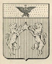 ARMA: Di rosso a due leoni controrampanti d’oro, sostenenti una stella dello stesso; al capo d’oro caricato di un’aquila di nero, coronata del campo.