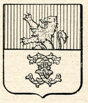 ARMA: Troncato: nel 1° di rosso al leone d’oro nascente dalla troncatura; nel 2° d’argento a due C d’azzurro fiorate ed intrecciate.