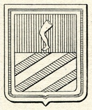 ARMA: Troncato: al 1° di rosso ad una coscia umana al naturale; al 2° d’argento a tre sbarre di verde: lo scudo bordato d’argento alla filiera d’azzurro.