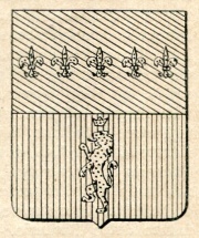 ARMA: Troncato: nel 1° di verde a cinque gigli d’oro posti in fascia; nel 2° di rosso al leone coronato di oro.