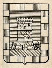 ARMA: grembiato di rosso e d'argento di otto pezzi, caricato in cuore da uno scudetto rotondo d'azzurro, alla torre d'argento, merlata alla guelfa, aperta e finestrata di nero