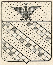 ARMA: D’oro a tre bande scaccate di argento e d’azzurro col capo d’oro all’aquila spiegata di nero, coronata del campo e linguata di rosso.