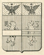 ARMA: Partito: nel 1° di rosso al leone d’oro tenente una grata di ferro e attraversato da una fascia d’argento, col capo d’oro caricato di un’aquila coronata di nero; nel 2° di rosso al leone d’oro rivoltato, tenente un calice dello stesso e attraversato da una gemella in fascia d’argento, col capo d’oro caricato di un’aquila coronata di nero.