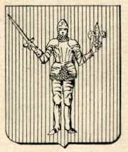 Alias: Di rosso ad un guerriero armato di tutto punto, posto in fronte, impugnante colla destra una spada nuda in banda, e colla sinistra un giglio d’oro.