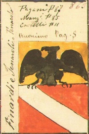 Alias: Troncato: nel 1° d’oro, all’aquila di nero; nel 2° di rosso alla banda di argento.