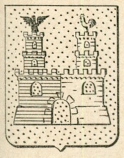 ARMA: D’oro al castello partito di azzurro e di argento, cimato da due torri di due piani dello stesso aperte e finestrate del campo; quella di destra sormontata da un aquila di nero, quella di sinistra da un gallo al naturale.