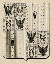 Alias: Inquartato: nel 1° e 4° d’oro all’aquila di nero, coronata del campo; nel 2° e 3° d’argento alla colonna di marmo bianco, coronata d’oro, accollata da due viti, con tre giri, al naturale; tutto lo scudo con la bordura composta d’oro e d’azzurro. (D. M. di Ric. 10 maggio 1904).