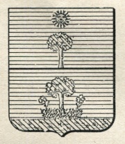 ARMA: D’azzurro alla campagna di verde con una siepe d’oro fiorita di due rami di verde fioriti d’argento in mezzo alla quale sorge un albero di verde sormontato da, un sole rosso di dodici raggi.