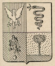 Alias: Di rosso inquartato da un filetto; nel 1° all’aquila; nel 2° al biscione ingoiante un putto; nel 3° all’angelo camminante; nel 4° all’albero, il tutto d’oro. (D. M. di Ric. 12 aprile 1901).