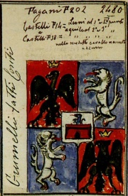 Alias: «Da Grommelo portano uno scudo dentro un’aquila negra in campo giallo in cima, sotto una fassa morela, dentro una stella gialla e bianca, sottopartita: a man dritta rosso, la stella ut supra, a man versa turchina con la stella predetta». Inventario n. 562, p. 126.