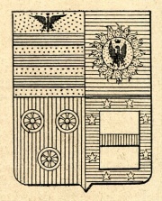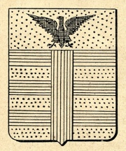ARMA: Fasciato di azzurro e d’oro, colla spezzatura di un palo di rosso; col capo d’oro carico di un’aquila di nero.