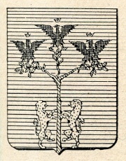 ARMA: D’azzurro alla pianta (leccio) di verde, cucita, nodrita nella punta dello scudo, divisa in tre rami sostenenti ciascuno un’aquila spiegata di nero, cucita, coronata d’oro; il tronco sostenuto da due leoni di oro rampanti, affrontati.