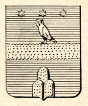 ARMA: D’azzurro alla fascia d’oro merlettata sostenente un allocco d’argento sormontata da tre stelle d’oro (6) in fascia ed in punta al monte di tre cime d’oro.