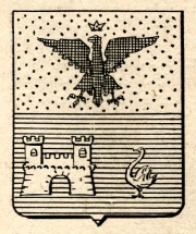 ARMA: Troncato: al 1° d’oro all’aquila di nero coronata del campo; al 2° d’azzurro al castello d’argento, posto verso destra e sinistrato da un cigno al naturale.