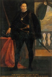 Olio su tela, cm 240x156, di anonimo lombardo della seconda metà del XVII secolo, Fondazione Morando-Bolognini. Il personaggio è raffigurato a figura intera con cintura e spada, corpetto e calze nere, giubba nera foderata di pelliccia, copricapo nero ed al collo un ricco collarino con medaglia d’oro effigiante il leone di San Marco. Volge il viso a destra ed appoggia la mano destra ad un braccio d’armatura posto su di un tavolo, coperto da un drappo. Sullo sfondo, al di sopra di un arco con tendaggio, vi è lo stemma e nella fascia inferiore si trova la scritta: PHILIPPVS LVPVS EQVES ET DVX DANDOLAM E VENETA NOBILITATE PROCVRATORIS NICOLAI LEONIS FILIAM DVXIT 1470 La tela presenta alcune cadute di colore, è tesa, abrasa ed ossidata, racchiusa in una cornice in legno intagliato e dorato non pertinente, al centro della quale vi è un cartiglio con scritto: DONO DELLA FAMIGLIA LUPI DAINA