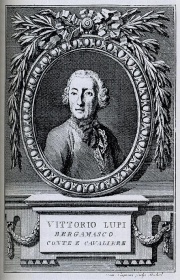 Ritratto a zincografia di Vittorio Lupi inciso dal milanese Domenico Cagnoni come antiporta dell’opuscoletto per le nozze della nipote con il conte Sottocasa (1775)