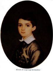Olio su tela di 66.3x37.6 cm., opera di Ponziano Loverini (1845-1929), 1912, Bergamo, Collezione privata della nobile Daina de Valsecchi. Sul retro si trova: Conte Luigi Lupi - ritratto eseguito dal Prof.r Loverini | Ponziano | Bergamo 1912 Si vede ritratto il personaggio in età anziana con baffi e capelli bianchi. Si tratta di un ritratto eseguito postumo, o forse terminato postumo, dato che il conte Luigi era morto nell’anno precedente.