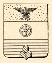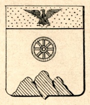 Alias: Troncato di rosso e d’argento alla riga d’azzurro e caricato nel 1° d’una ruota d’argento; nel 2° d’un monte di tre cime di verde movente dalla punta. (Camozzi, n. 2623; Manganelli, p. 66).