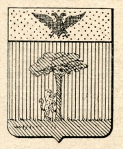 ARMA: Di rosso all’albero di verde nodrito sulla campagna dello stesso e sostenuto da un leoncino addestrato d’oro, col capo d’oro caricato di un’aquila bicipite di nero.