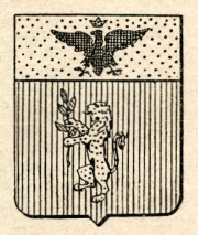 ARMA: Di rosso al leone d’oro tenente con le due branche un ramo di lauro al naturale, col capo dell’impero.